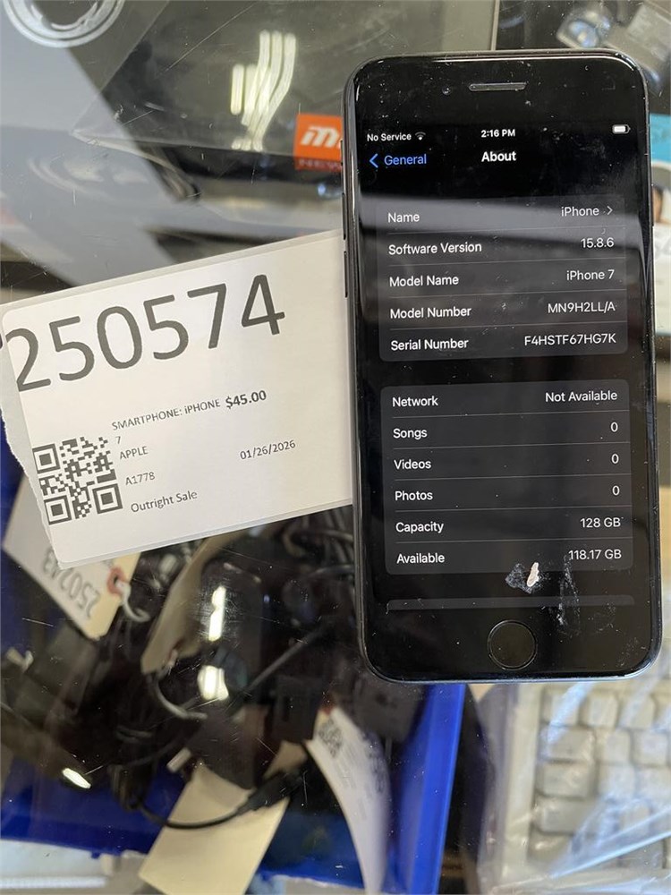 SMARTPHONE: iPHONE 7 128GB BLACK AT&T