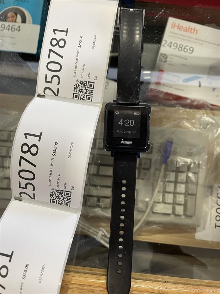 POWERS ON, NOT TESTED FURTHER, INCLUDED CHARGING BASES, CABLES, AND WRIST BAND