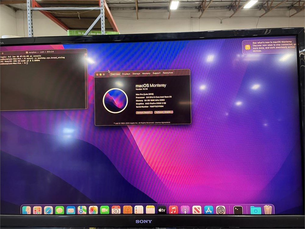 COMPUTER: MAC PRO INTEL XEON E5-1650 / 64GB RAM DDR3 / 1TB FLASH HD / AMD FIREPR